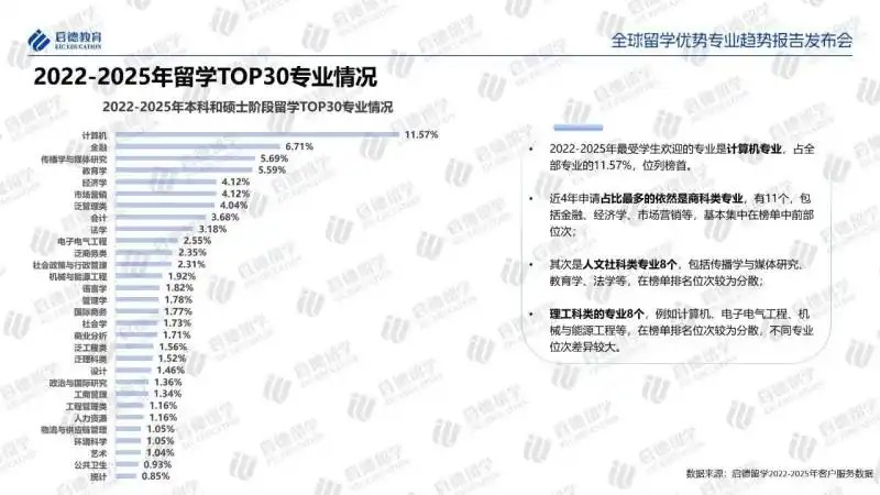 活动最大亮点在于,近日启德教育正式发布《全球留学优势专业趋势报告》。报告基于近四年超40万条留学申请与录取数据,结合多方权威信息,深度解析全球教育变革下的专业选择新方向,为申请者提供立体全面的科学指南。
