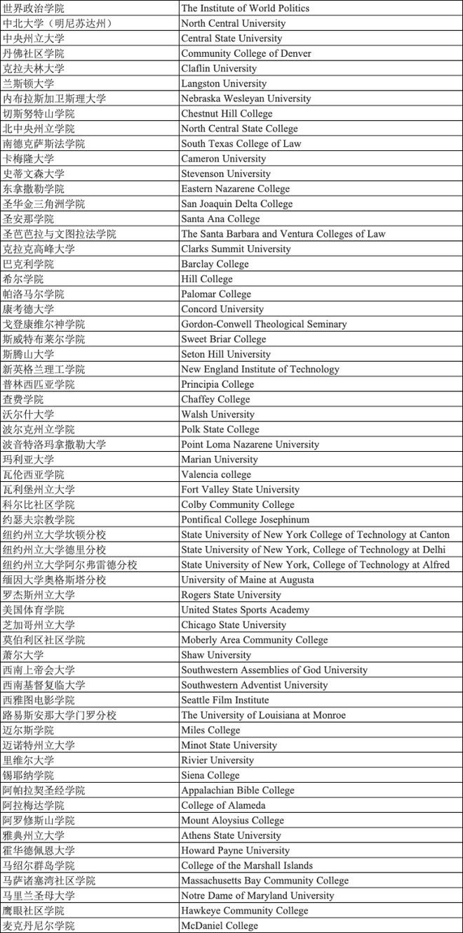 值得关注的是,美国有63所院校被移除,名单如下,各位同学在选择留学院校的时候一定要谨慎辨别