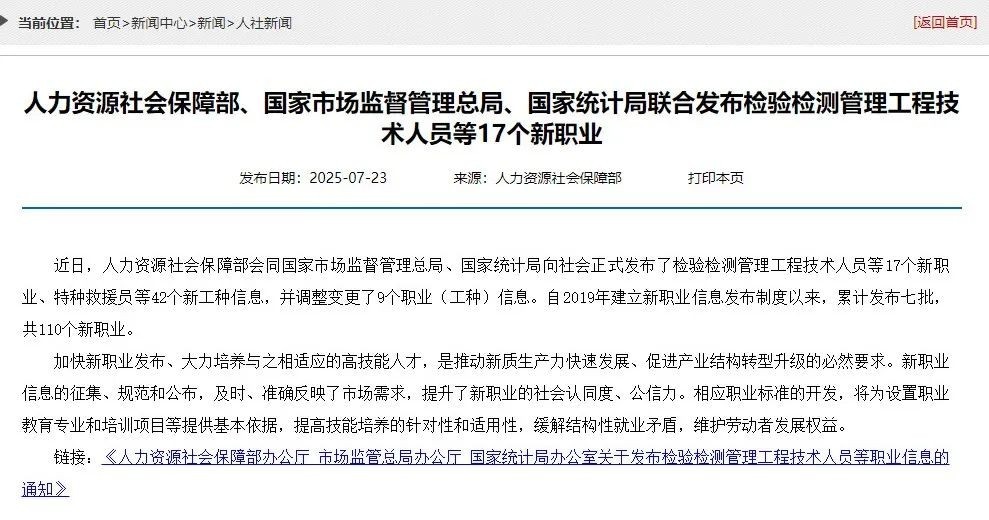 近日,人力资源社会保障部联合国家市场监督管理总局、国家统计局正式发布了17个新职业及42个新工种信息,涵盖检验检测管理工程技术人员、养老服务师、跨境电商运营管理师、无人机群飞行规划员等领域。此次调整不仅反映了国内产业升级与民生服务细化的趋势,也为留学生未来职业规划提供了重要参考。